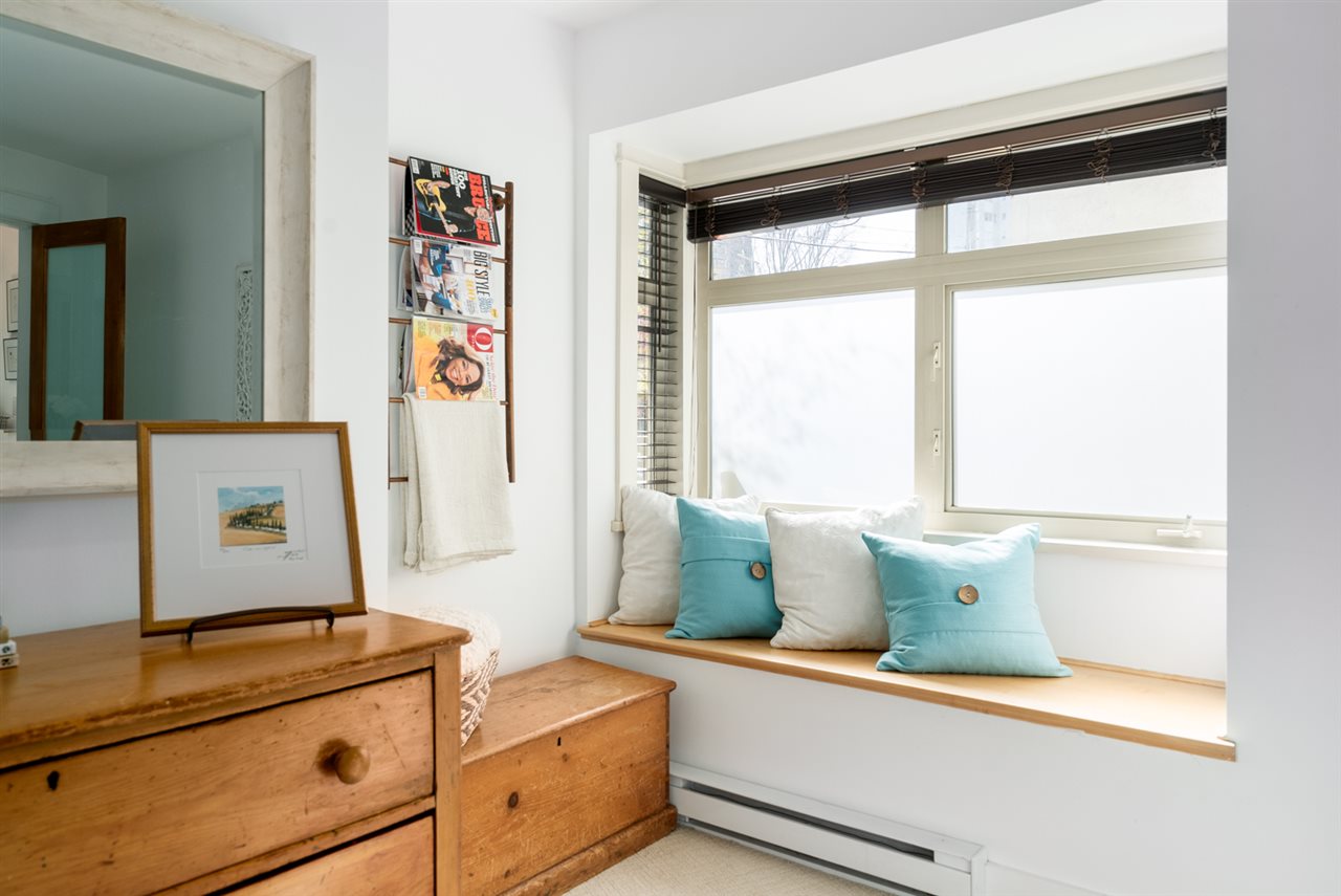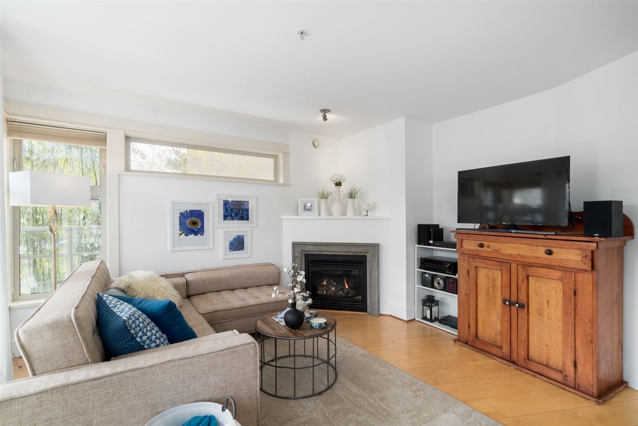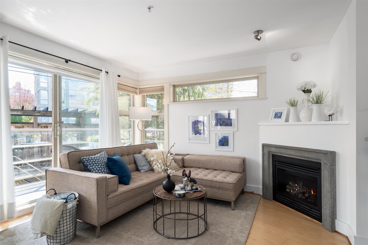 Rare opportunity at Georgia Award winning Torrey Pines. Beautiful 2 bdrm, 2 bath & den south facing corner unit with large wrap around patio with tons of natural light in a private garden setting. Open concept kitchen & living area with hard surface flooring, granite counters with s/s appliances, gas range, breakfast bar & gas fireplace along with separated bedrooms & quality finishings throughout. Well built with only 2 homes per floor & finished with hardi plank siding. Secure parking & storage. Excellent south Granville location & just steps to the neighborhoods boutique shopping, fine dining, cafes, and transit. Close proximity to seawall, Granville Island and downtown corridor.