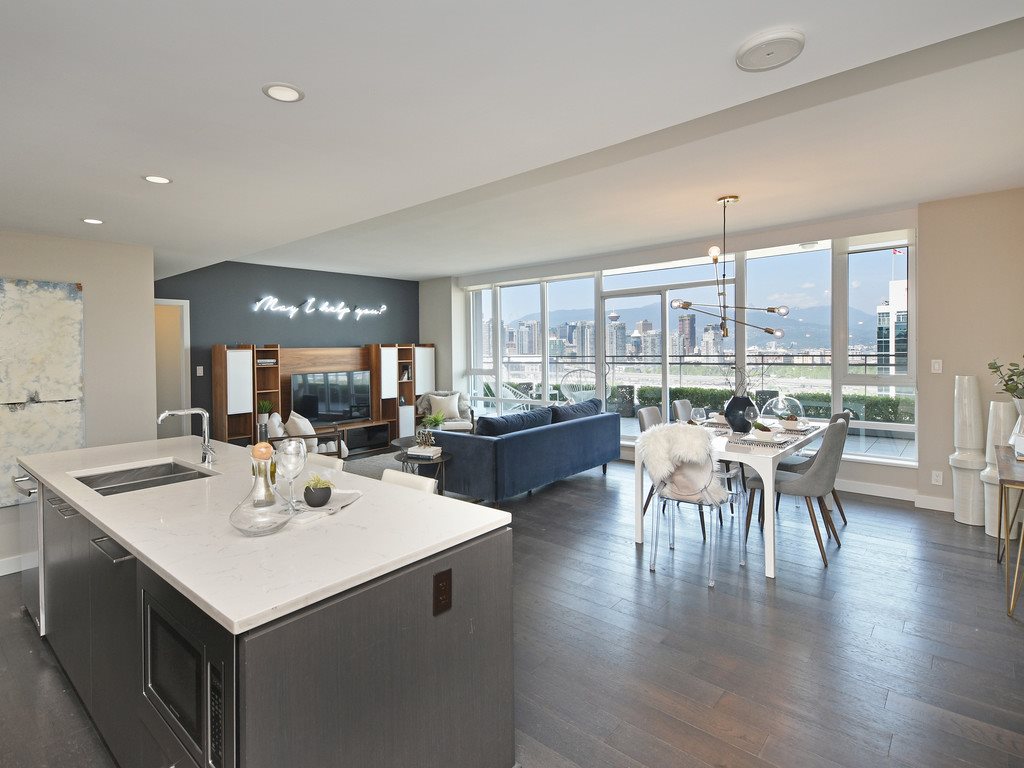 The CENTRAL lives up to it’s name. You are in the heart of the city! With shopping, restaurants and recreation at your doorstep. Just steps to public transit, but why would you go anywhere? This spacious 2bed/2bath + den sub penthouse with it’s open floor plan provides a feeling of sophisticated glamour as every window looks out at all the iconic landmarks, waterways and mountains that this beautiful city has to offer. With friendly 24/7 concierge, a first class fitness facility, media and meeting rooms; this well maintained building boasts everything you could ask for. 2 side by side parking stalls, a generous storage locker, in a pet and rental friendly building at a new price (Assessed at $2,226,000). Come see for yourself what The Central has to offer this Sunday July 14 from 2pm-4pm!