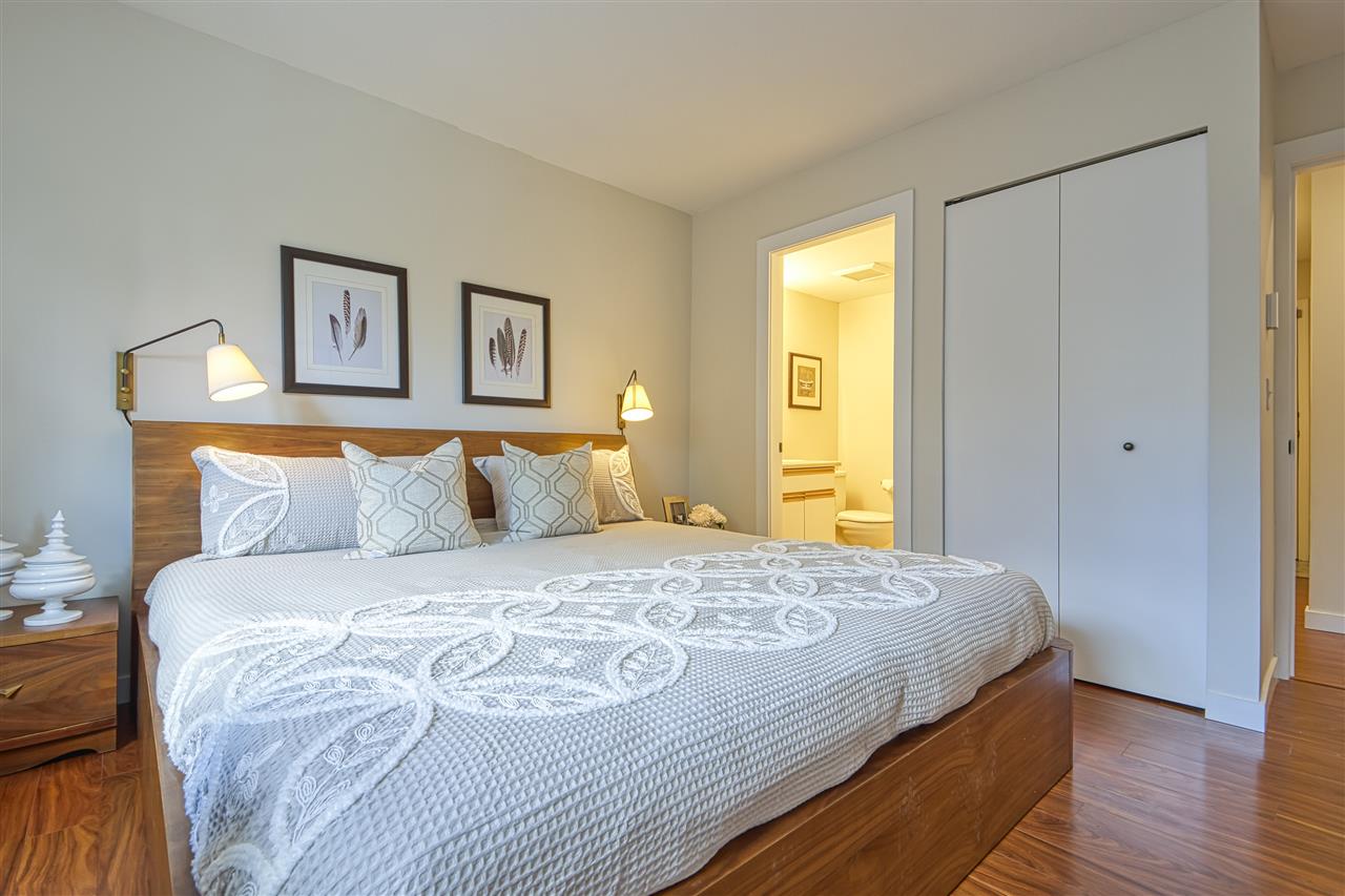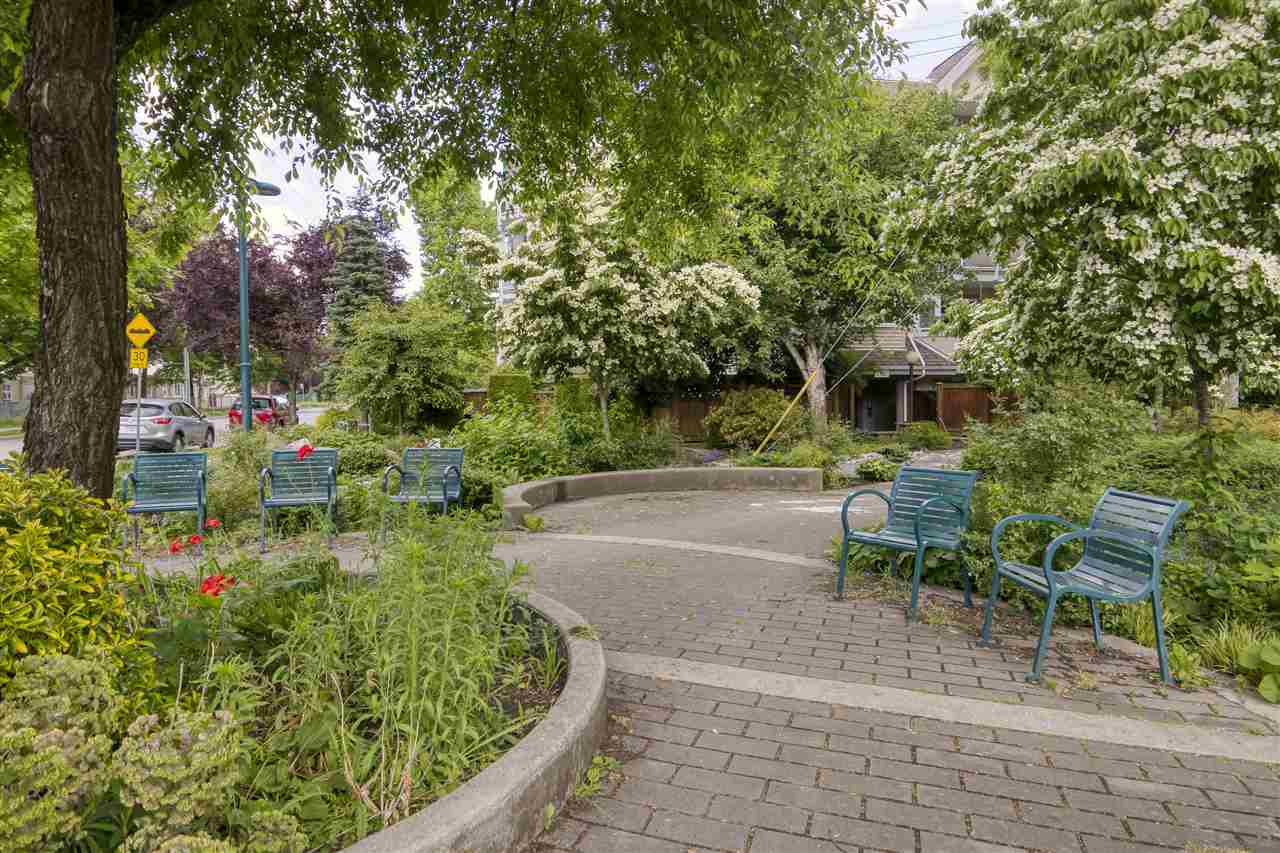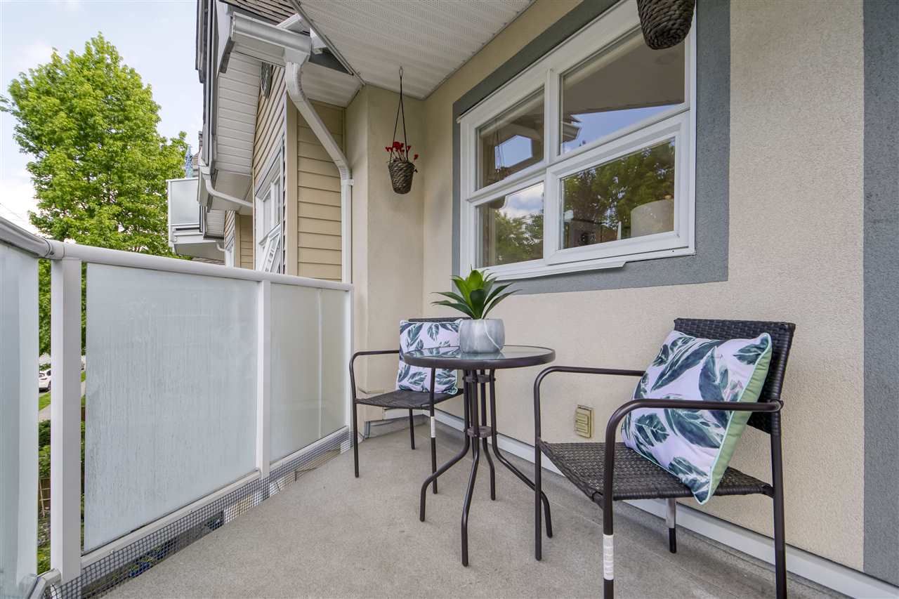 Welcome to Woodland Terrace! An incredibly well run complex just off iconic Commercial Drive – home to restaurants, bars, music, transit, with a bike route literally outside your door. Beautifully updated 2bdrm/2bath SW CORNER unit is bathed in natural light. Dream kitchen with custom fir doors and solid wood cabinetry, soapstone counters and Bosch appliances. On summer nights make use of the thermal blackout blinds or change the mood anytime with dimmable LED pot lights throughout. Main bath is stunning w/octagon and dot marble tiles and genuine teak floating vanity. The list goes on with soundproof, solid core doors and programmable digital thermostats. 2 balconies! INSUITE LAUNDRY. Parking/storage incl. Pet friendly but sorry NO rentals. Call for your private COVID-friendly showing.