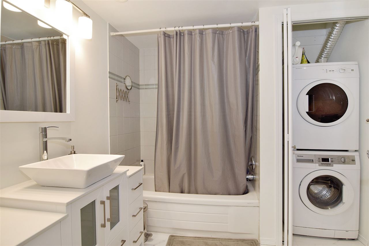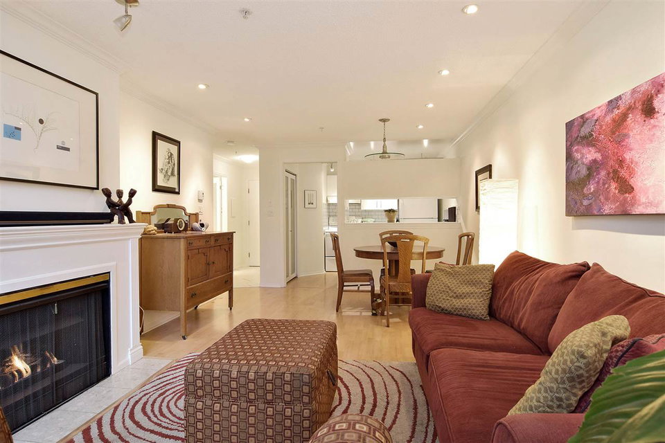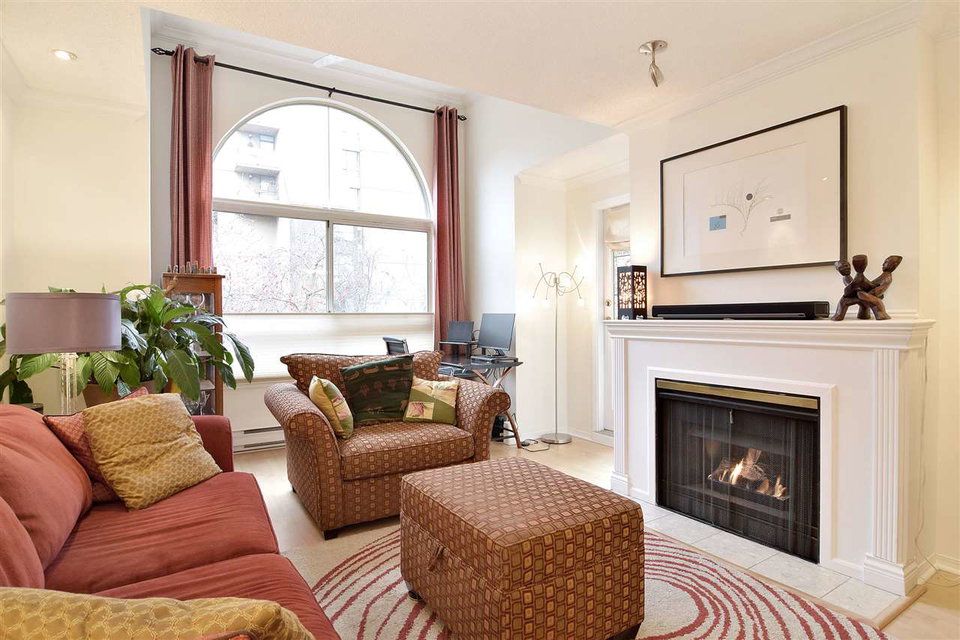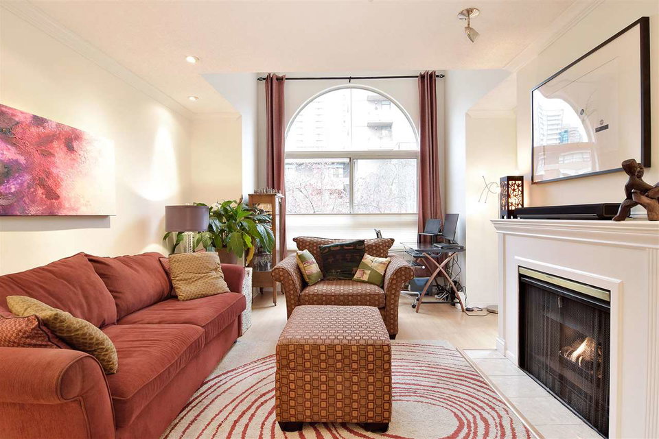 Renovated Gem with Vaulted Ceilings in the West End! Nestled on a peaceful tree-lined street, this large quiet 1 bedroom has it all. Cozy fireplace, spacious rooms and natural light streaming through the picture windows. Living room nook accommodates a desk for home office. Bedroom allows a king size bed. Some updates include paint, flooring, bathroom, appliances, tiling, lighting. Great building with beautifully landscaped private courtyard creates oasis in the city. Bldg updates: partial rainscreen, plumbing, roof. Insuite laundry, bike room, parking, locker. Pet friendly. Walker & biker paradise (97 Walkscore). Enjoy the Walkway on Bute and all the shops and restaurants on Robson just around the corner! Walk to Nelson Park, Stanley Park, English Bay, seawall. 3D VIRTUAL TOUR available.