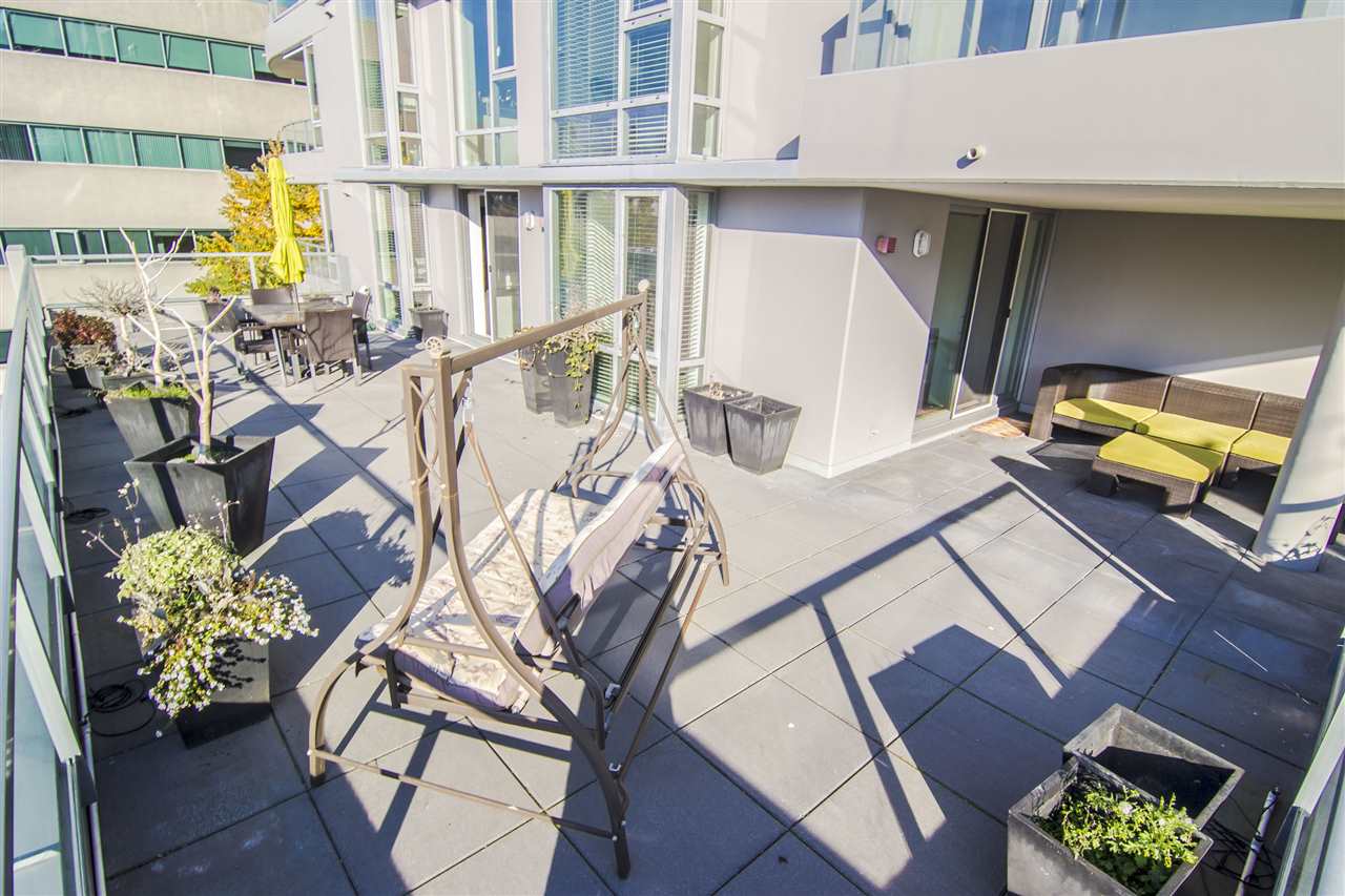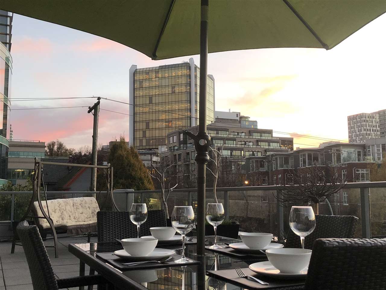 Incredible Unique Fairview Property!!! Featuring an open concept, 1018sqft floorplan with 2 bedrooms, 2 full bathrooms and den. A kitchen with granite counters and stainless steel appliances. A master suite with custom built in cabinetry and ensuite, as well as private 84sqft patio. Move from the spacious living room out onto your spectacular 815sqft private outdoor space with 270 degree views of the mountains and city. A perfect layout for entertaining your family and friends. This boutique building is a stones throw from Whole Foods, the Canada Line, restaurants and the seawall. Everything you need right at your doorstep. For investors, the proximity to VG Hospital has generated fantastic returns on investment. Open House Sat. May 18th 1-4PM