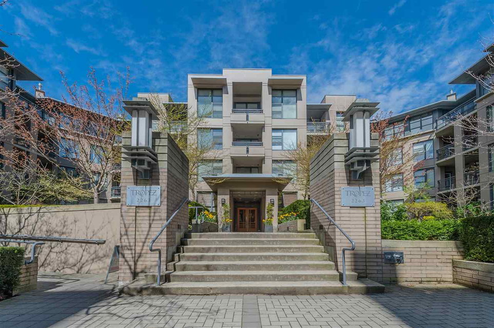Spacious 1200 sf 2 bdrm + den in Kitsilano’s multi award winning Tropez – a top quality, rainscreened concrete bldg. Extremely well-managed with healthy Reserve Fund, reasonable monthly fees & live-in caretaker in strata owned suite. Bright SW corner unit features high ceilings, hardwood flrs, gas range & f/p, huge master with 4 -pc ensuite plus big balcony overlooking landscaped courtyard. Enjoy this quiet oasis in much desired Arbutus Walk neighbourhood – so convenient to parks, schools, Comm Rec Centre, grocery shops, cafes, bus transit, future Arbutus subway station and only 10 min stroll to Kits Beach. Impressive Walkscore rating of 94. Includes storage locker, 1 pkg space (with Electric Vehicle charging station currently available for exclusive use) + visitor pkg. Pet friendly, too.