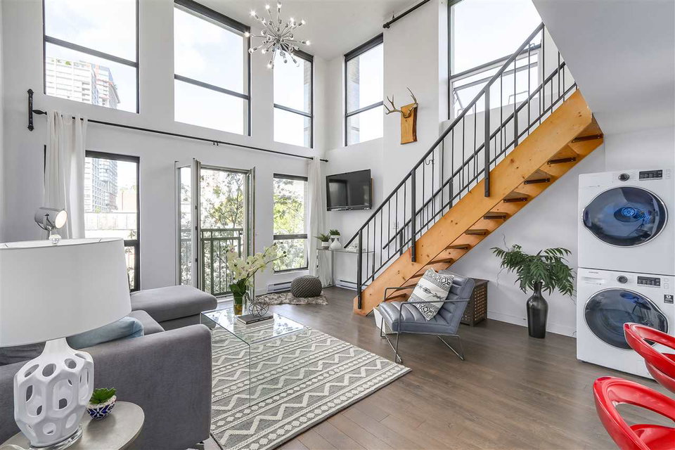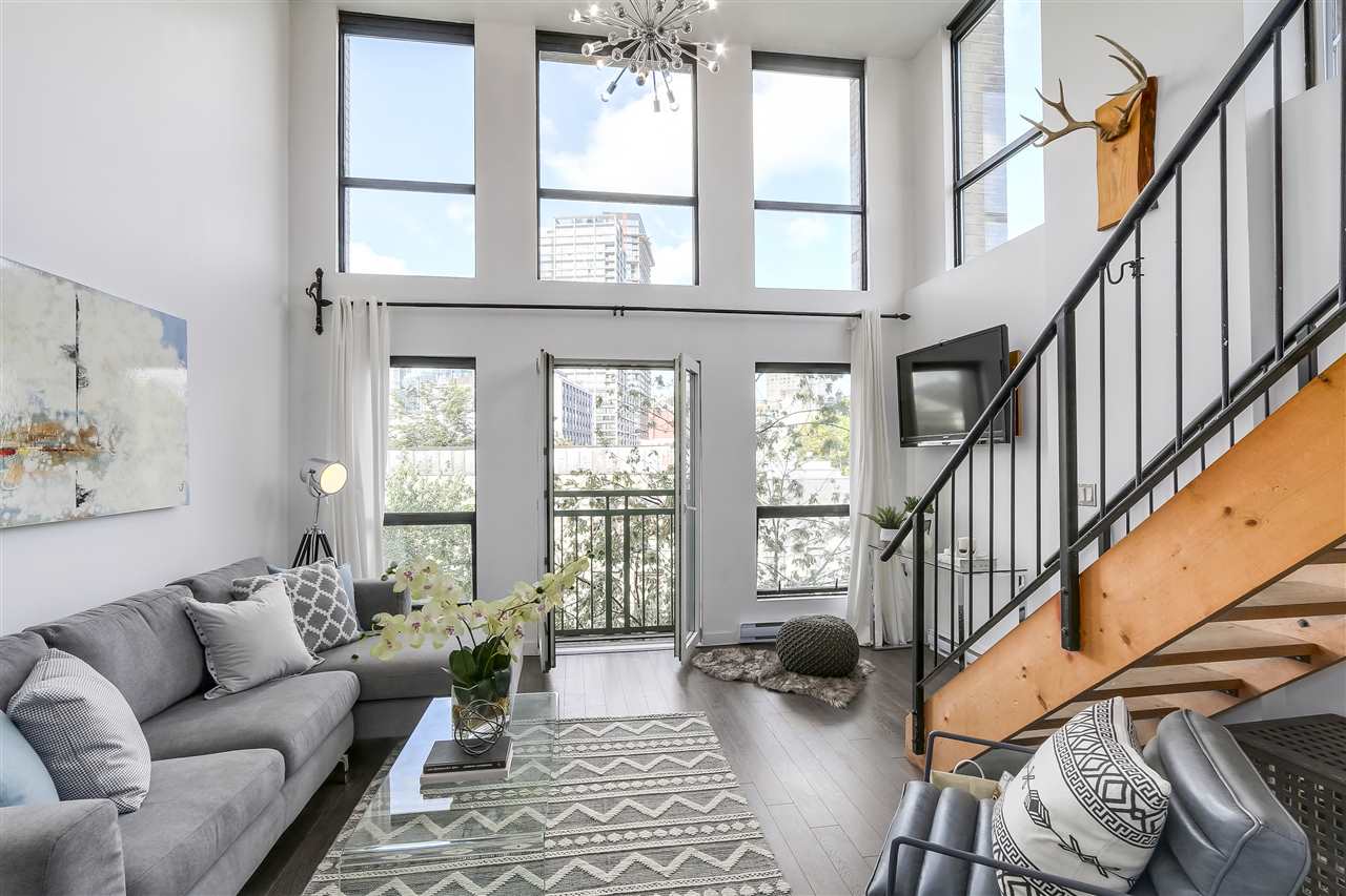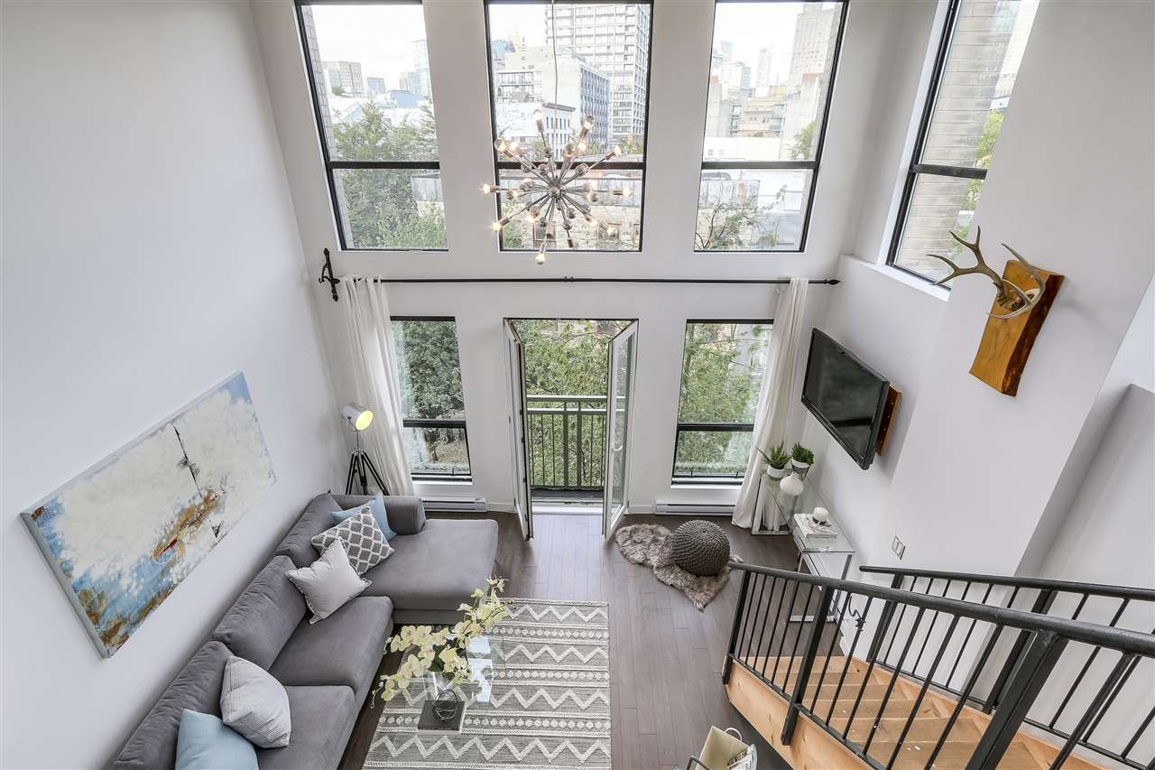 LIVE, WORK, PLAY in the heart of uber-chic Gastown with everything at your doorstep. Not an inch of wasted space in this sub-penthouse corner loft. Double height 16 ft. ceilings with South facing Juliet balcony means even the darkest days are naturally bright. Fully equipped kitchen with stainless steel appliances, under mount sink & breakfast bar in this wide open floor plan allow the chef to be part of the action. Spa-like bathroom with heated floors & a generous soaker tub. Bring your king-sized bed and that shoe collection as this bedroom can take it all. Walk score 10+! Rentals/ pets allowed. Parking included.