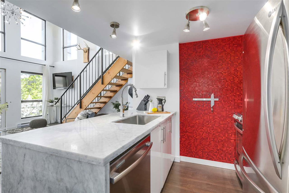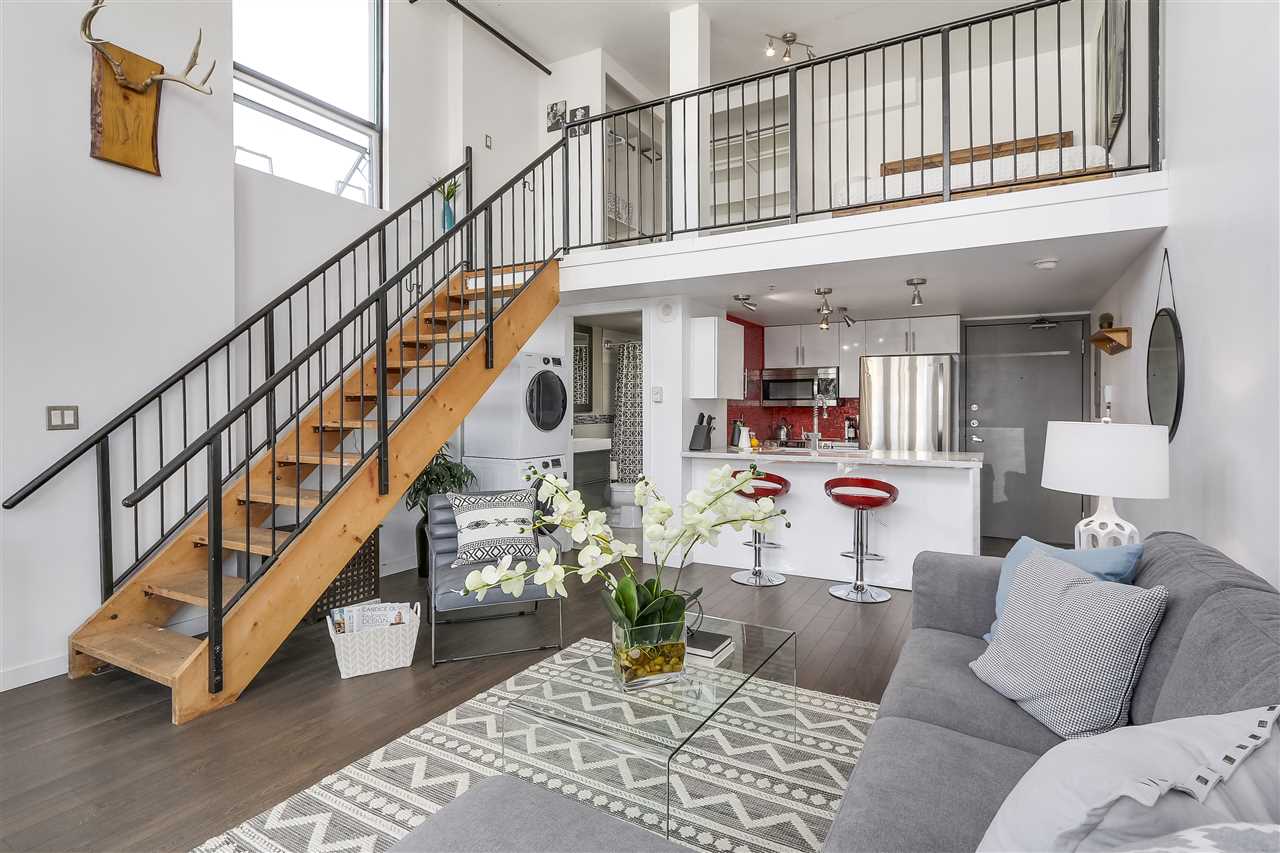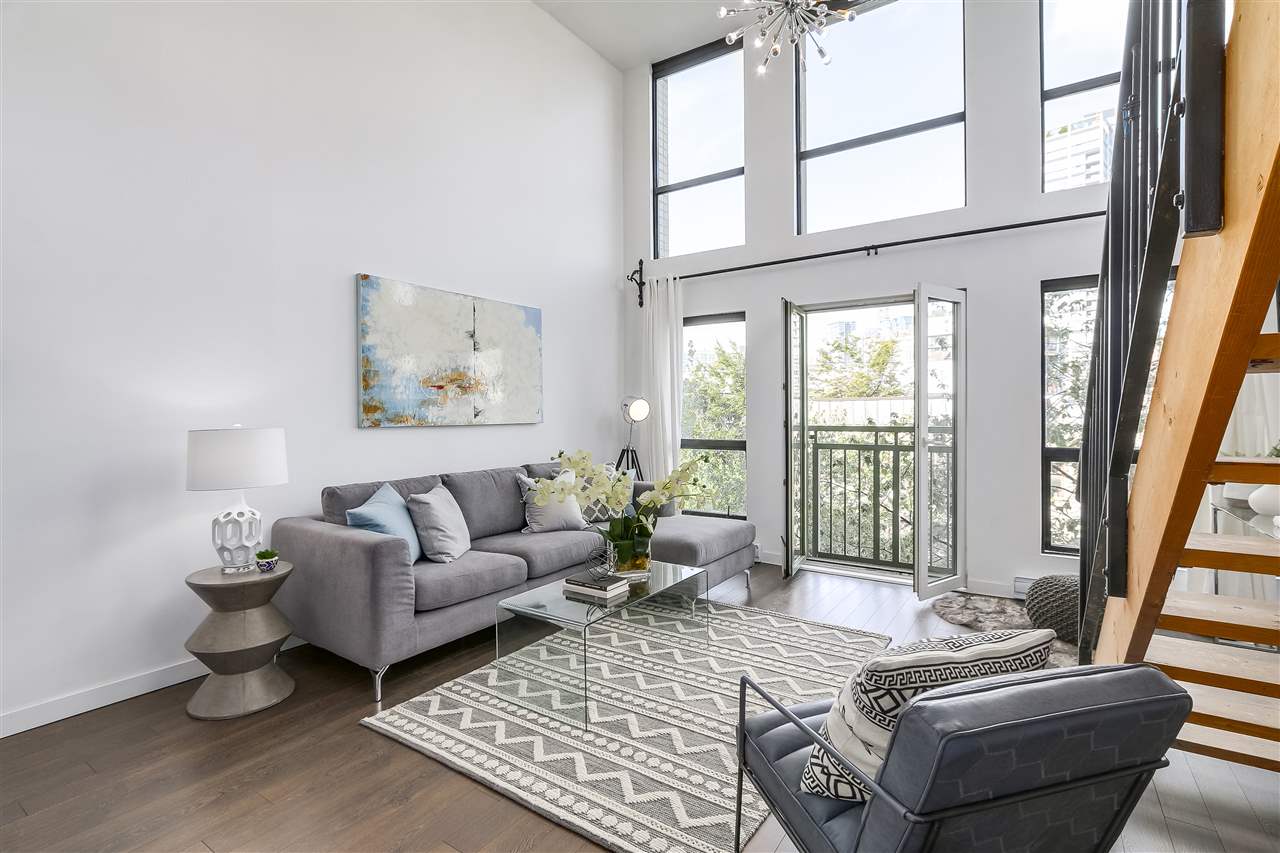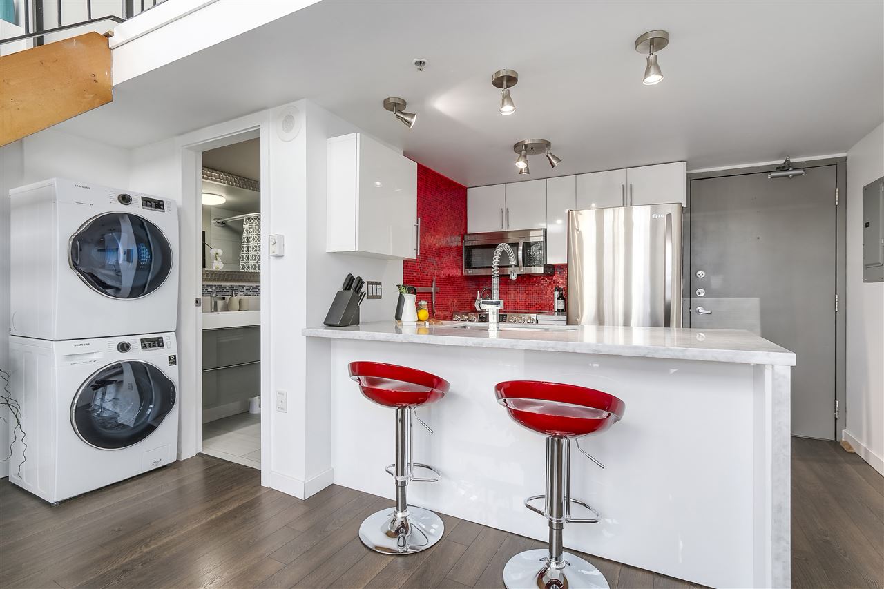 LIVE, WORK, PLAY in the heart of uber-chic Gastown with everything at your doorstep. Not an inch of wasted space in this sub-penthouse corner loft. Double height 16 ft. ceilings with South facing Juliet balcony means even the darkest days are naturally bright. Fully equipped kitchen with stainless steel appliances, under mount sink & breakfast bar in this wide open floor plan allow the chef to be part of the action. Spa-like bathroom with heated floors & a generous soaker tub. Bring your king-sized bed and that shoe collection as this bedroom can take it all. Walk score 10+! Rentals/ pets allowed. Parking included.