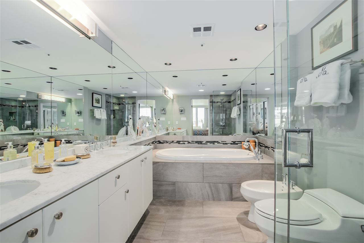 Ocean-side living in prestigious 888 Beach. Over 1600 sq ft of waterfront lifestyle with stunning South facing creek view. This generous 2 bedroom & den ticks every box. High end renovation with no detail spared. Induction cook top, Bosch appliances; the perfect kitchen for the gourmet chef. Separate bedrooms for maximum privacy with a luxurious master suite. Enjoy coffee on the deck watching Granville Island come alive. This location is the Shaughnessy of Yaletown. 2 parking and generous storage locker. Do not miss this!