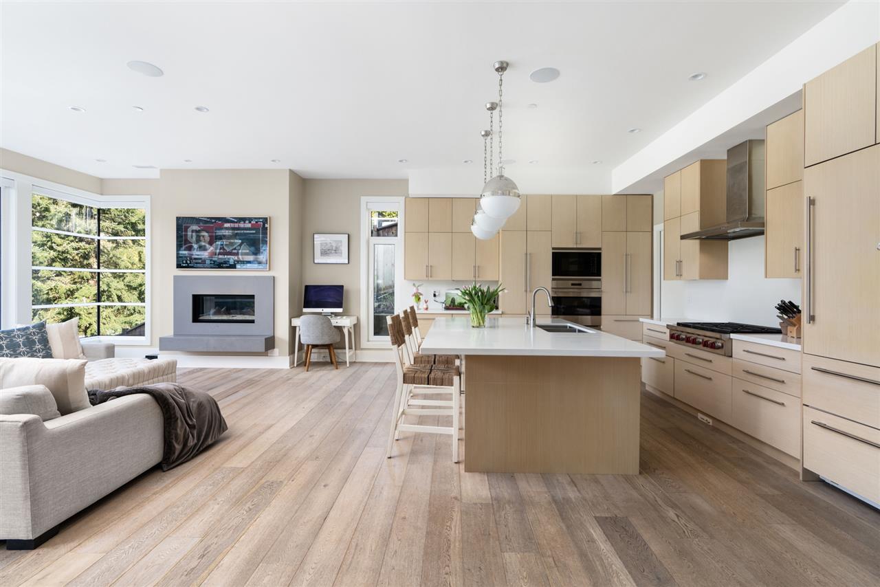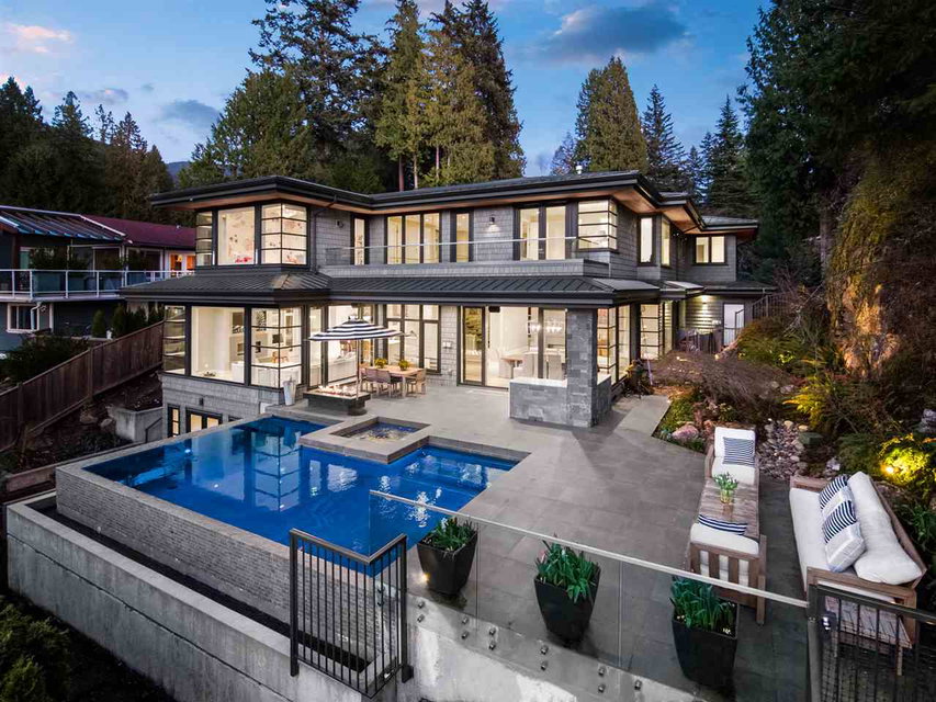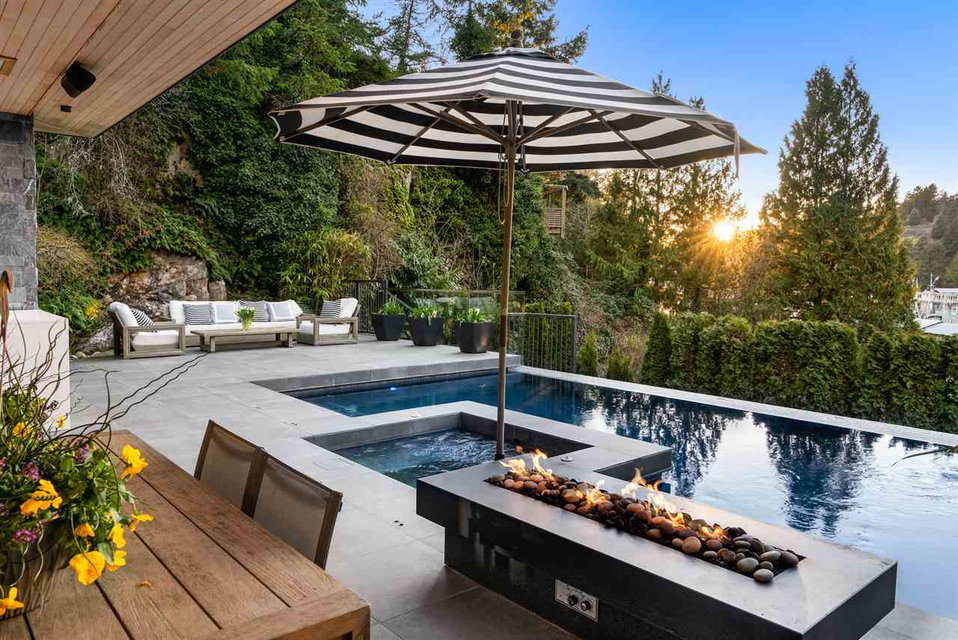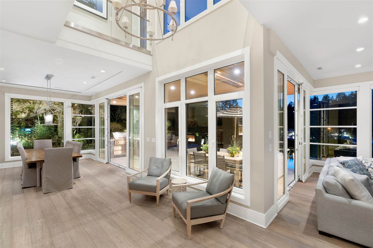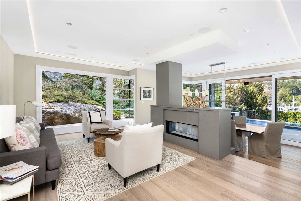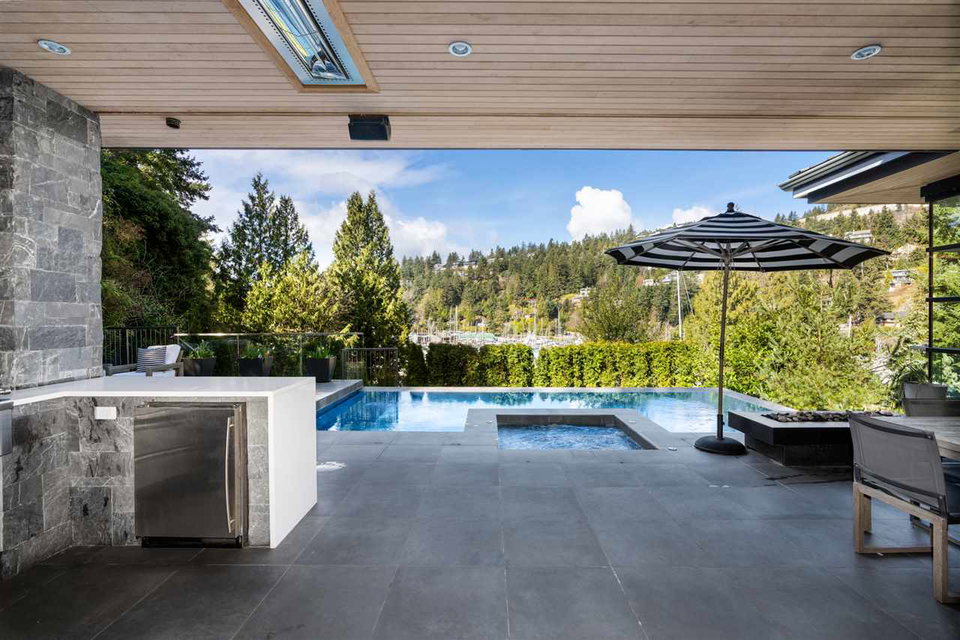 Relaxed & effortless yet sophisticated Beach House style with thoughtful design by Vesna Molby using natural materials & a subtle, driftwood-neutral palette. Rare opportunity to own a gorgeous 5 bedroom home in this sought after seaside community tucked away south of Marine Drive. Overlooking Fisherman’s Cove & Marina Views.Beautifully private, flat property. Easy care landscape & child friendly, hide & seek secret garden.Lazy 5 minute stroll or bike ride to sandy Eagle Harbour Beach & Yacht Club to relax, paddle board or sail. Open plan kitchen/family room/dining/living with two fireplaces lends itself to entertaining on a large scale with soaring ceilings, loads of window, wide plank white oak flooring.Enjoy the breezy indoor/outdoor living opening out to covered heated patio with outdoor kitchen overlooking fireplace & infinity edge pool/hot tub.Upper floor has 4 bedrooms including light & airy Master suite with glamorous ensuite and large balcony. Lower level rec room opens to private fireplace & patio.