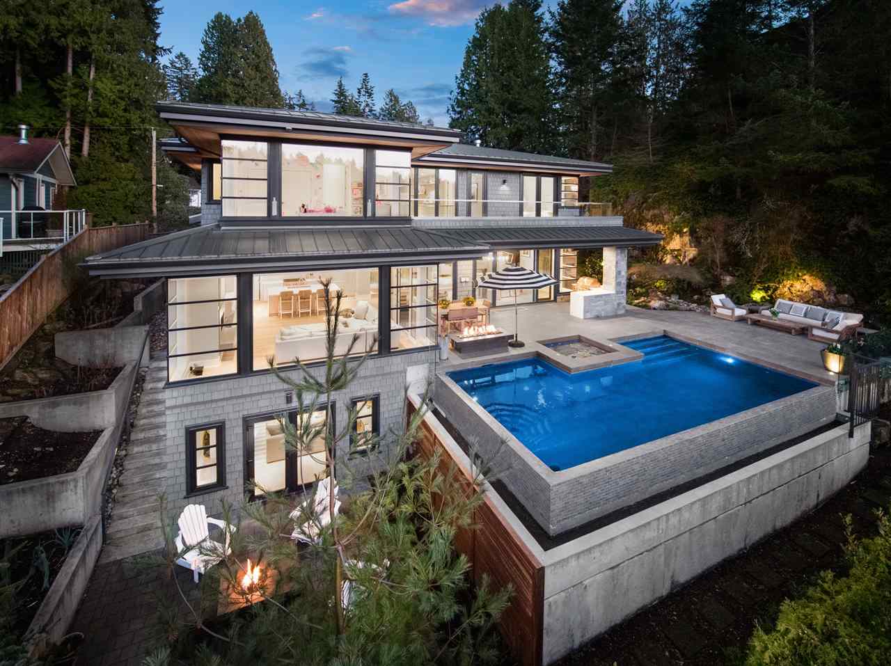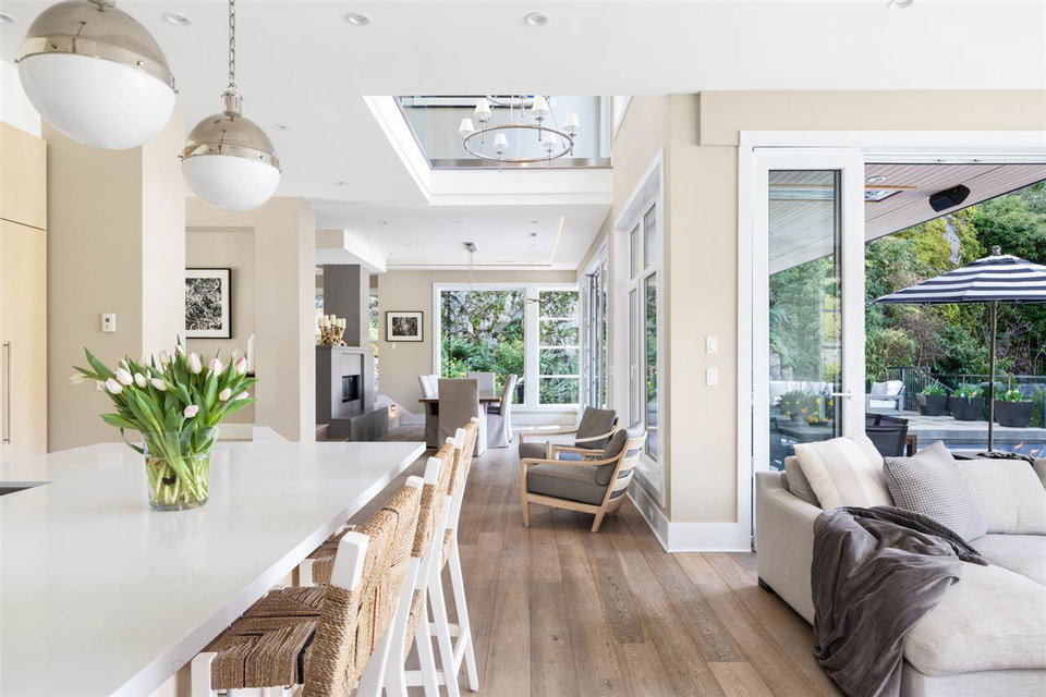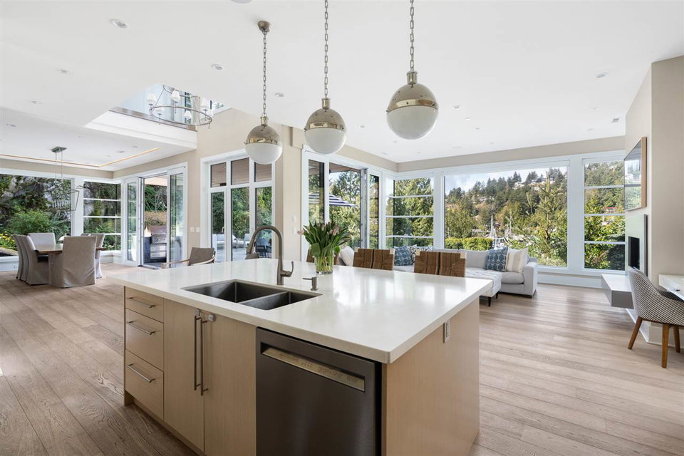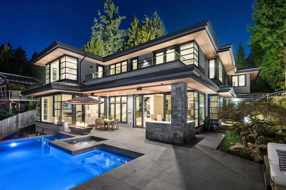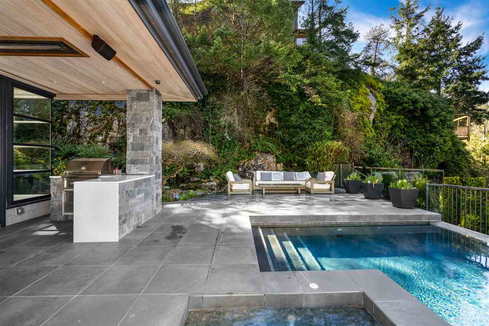 Relaxed & effortless yet sophisticated Beach House style with thoughtful design by Vesna Molby using natural materials & a subtle, driftwood-neutral palette. Rare opportunity to own a gorgeous 5 bedroom home in this sought after seaside community tucked away south of Marine Drive. Overlooking Fisherman’s Cove & Marina Views.Beautifully private, flat property. Easy care landscape & child friendly, hide & seek secret garden.Lazy 5 minute stroll or bike ride to sandy Eagle Harbour Beach & Yacht Club to relax, paddle board or sail. Open plan kitchen/family room/dining/living with two fireplaces lends itself to entertaining on a large scale with soaring ceilings, loads of window, wide plank white oak flooring.Enjoy the breezy indoor/outdoor living opening out to covered heated patio with outdoor kitchen overlooking fireplace & infinity edge pool/hot tub.Upper floor has 4 bedrooms including light & airy Master suite with glamorous ensuite and large balcony. Lower level rec room opens to private fireplace & patio.