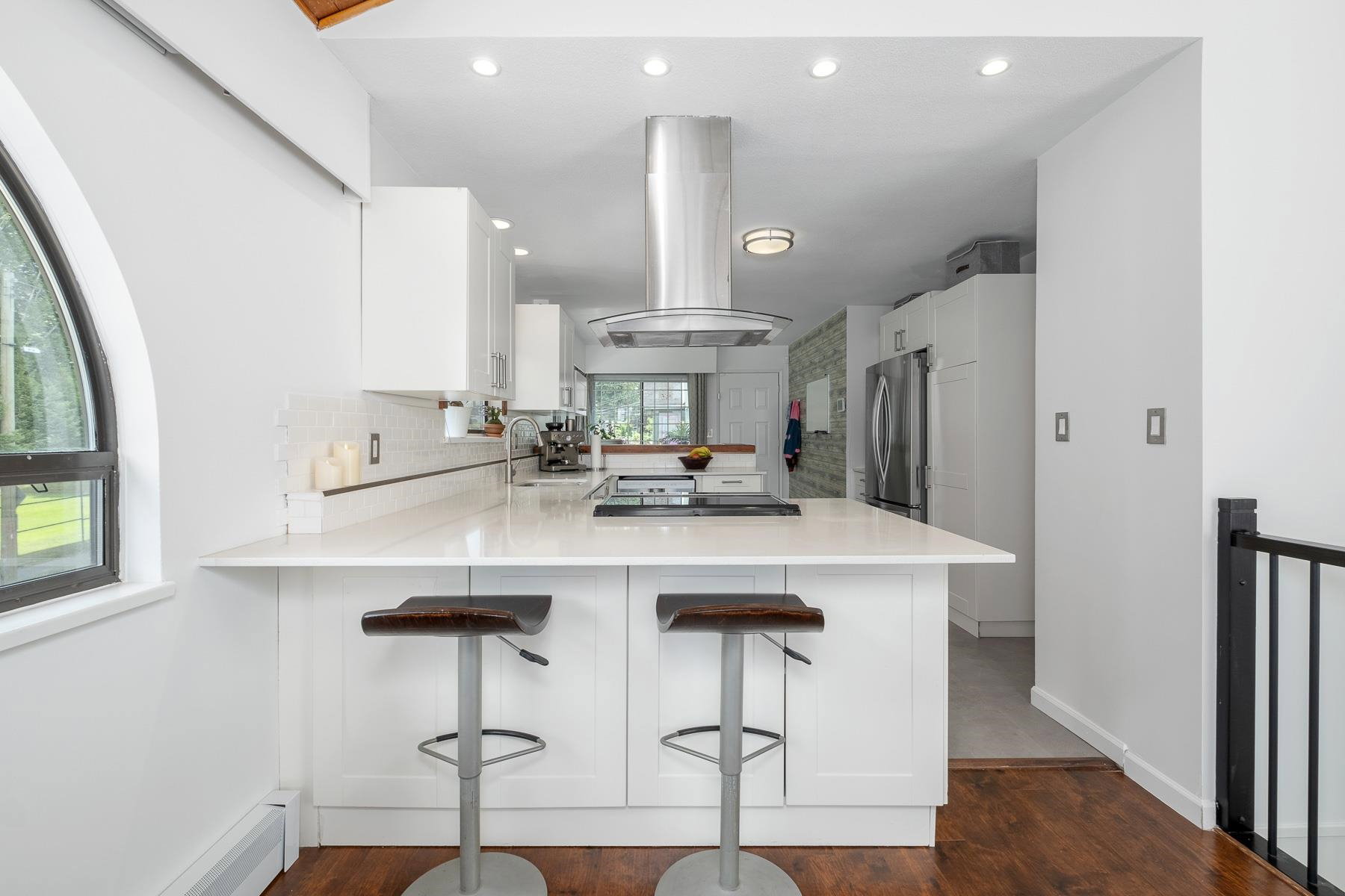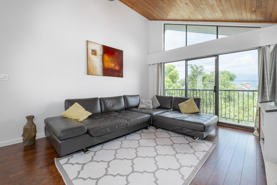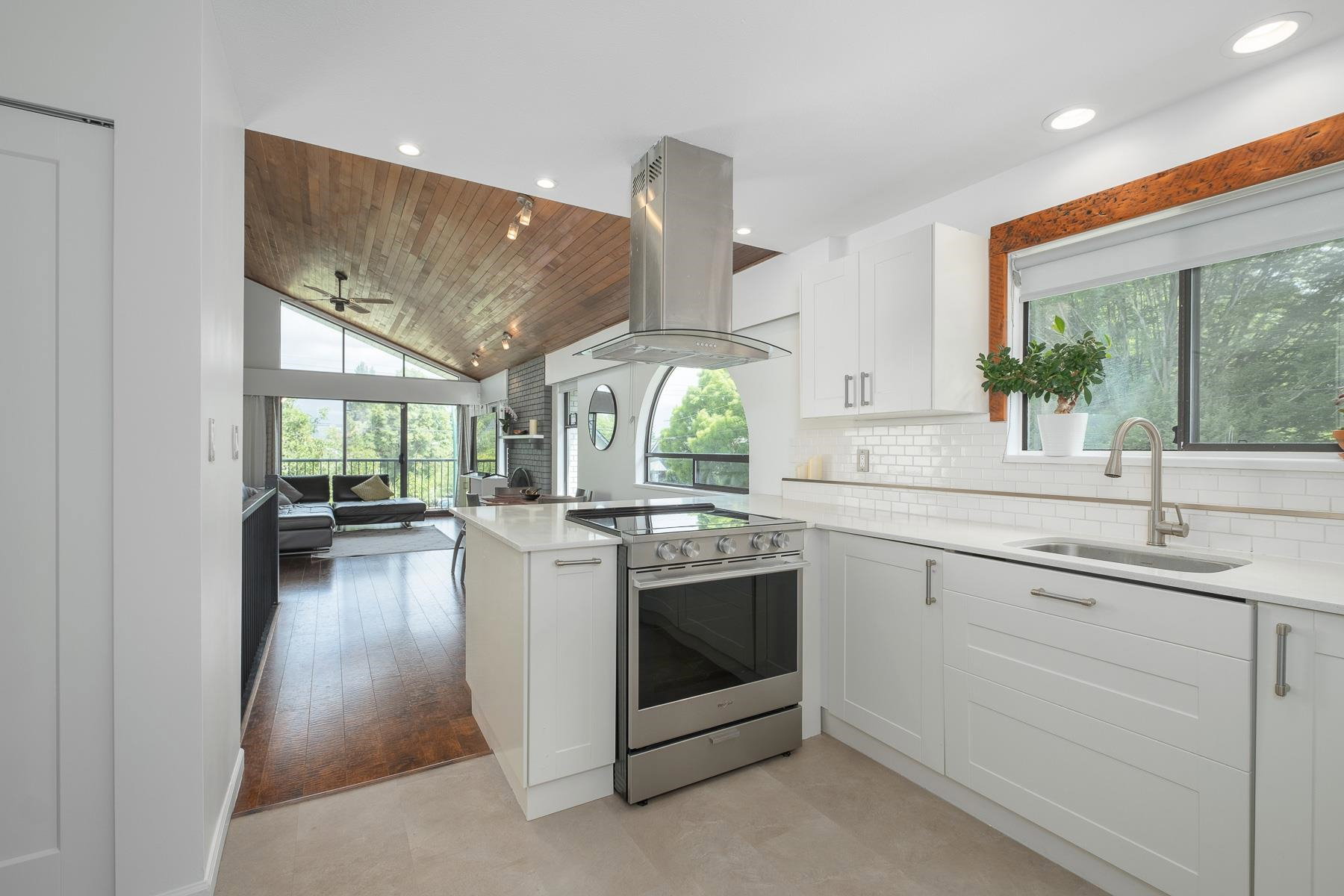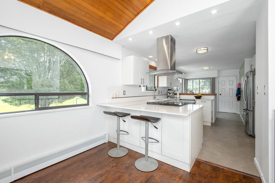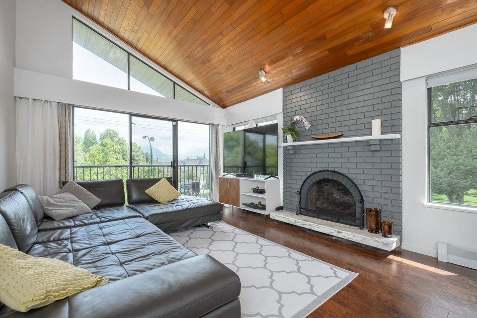POSSIBILITIES are endless for this exceptional corner VIEW property. An incredibly spacious 5 bedroom/3bath home graced with many updates and in pristine condition is now an unparalleled opportunity. High vaulted cedar ceiling in living room and dining room with double glazed windows, 2 fireplaces. New kitchen in 2015 and all new drain tiles in 2011. New paint, flooring, carpet and hot water tank (2022). Enjoy the best of summer on the generous s-facing sundeck while watching the kids enjoy the private fenced yard, complete with fruit trees. One block from Templeton High School and transit. Head over to the rec centre to take advantage of the pool and tennis court. Double car garage. RT5 zoned. Call for private viewing.