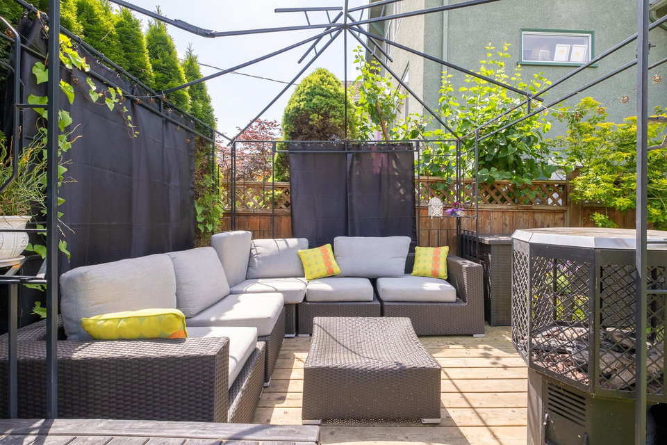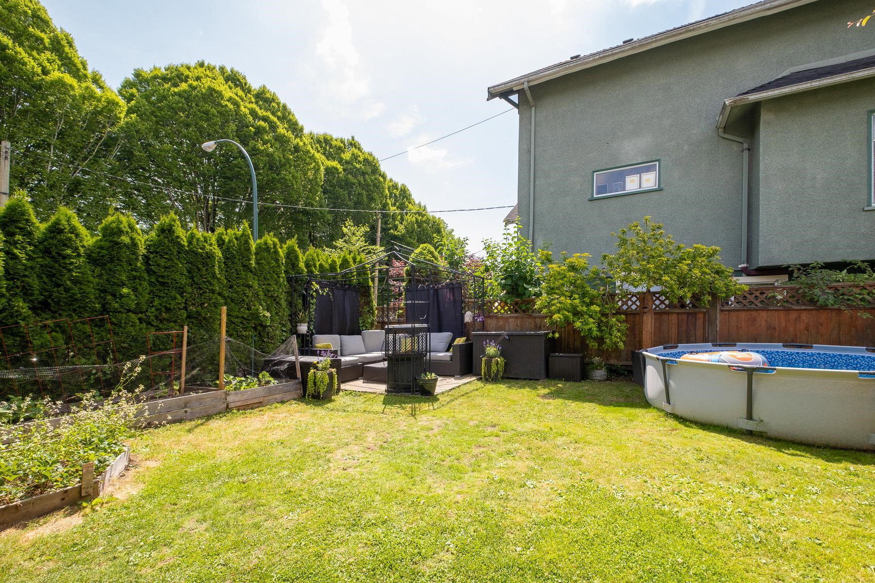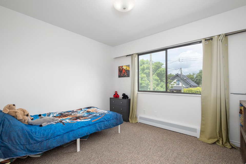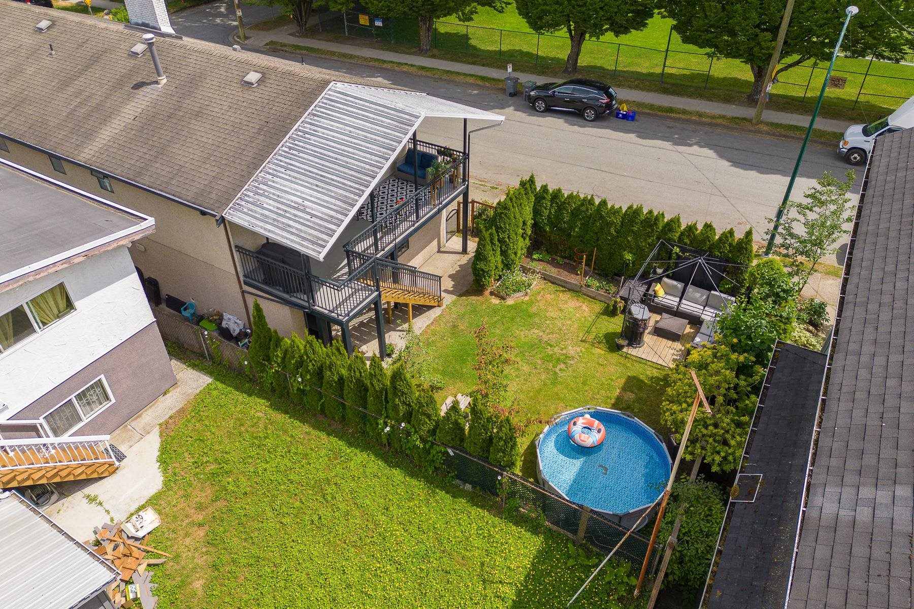 POSSIBILITIES are endless for this exceptional corner VIEW property. An incredibly spacious 5 bedroom/3bath home graced with many updates and in pristine condition is now an unparalleled opportunity. High vaulted cedar ceiling in living room and dining room with double glazed windows, 2 fireplaces. New kitchen in 2015 and all new drain tiles in 2011. New paint, flooring, carpet and hot water tank (2022). Enjoy the best of summer on the generous s-facing sundeck while watching the kids enjoy the private fenced yard, complete with fruit trees. One block from Templeton High School and transit. Head over to the rec centre to take advantage of the pool and tennis court. Double car garage. RT5 zoned. Call for private viewing.